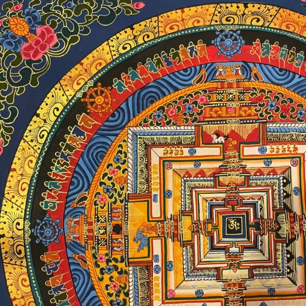 Kalachakra is the combination of two words kala which means time and chakra the endless circle kalachakra is also known as Wheel of time As we see here there are colorful circle there the symbols of six different elements i.e., wisdom, space, wind, fire, water and earth. After crossing these elements. We reach the palace of purity and we can see the three main entrance doors. They are body speech and mind doors continuously. The doors are in four different sides and are colorful. The color shows different directions. At the center we can see a booming lotus flower which is known as nirvana.Kalachakra means “wheel of time” which is design by H.H. Dalai Lama representation of Buddhist Stupa from ariel view. Kalachakra Mandala is a visual depietion of the Kalachakra Tantra Kalachakra Mandala outward they consist of rings of earthm, water, fire, wind, space and wisdom. one of most advanced and complex teachings of Buddhism. Practitioners use the mandala to visualize in meditation the steps along the Path to Enlightement. Everything in this mandala is the symbolic representation of some aspect of the Kalachakra deity and the deity’s univers. There are 722 deities in the mandala which symbolize carious manisfestations of aspects of conseciousness and reality. Understanding and interpreting all of the symbols included in the mandala would be like reading the Kalachakra texts, which contains a vast range of teachings from cosmology to epistemology to psychology, Kalachakra mandala has three diamensional palace containing five stories, each divided into four quadrants by compass direcion. Each quadrant is colored so as to represent elements within the human body: East corresponds with th color black. North corresponds with white. West with yellow and South with red, The five stories consist of the enlightened body, enlightened speech, enlightened mind. enlightened wisdom and enlightened great bliss. Beneath the palace are four element al ring and two outer rings. From the inside.