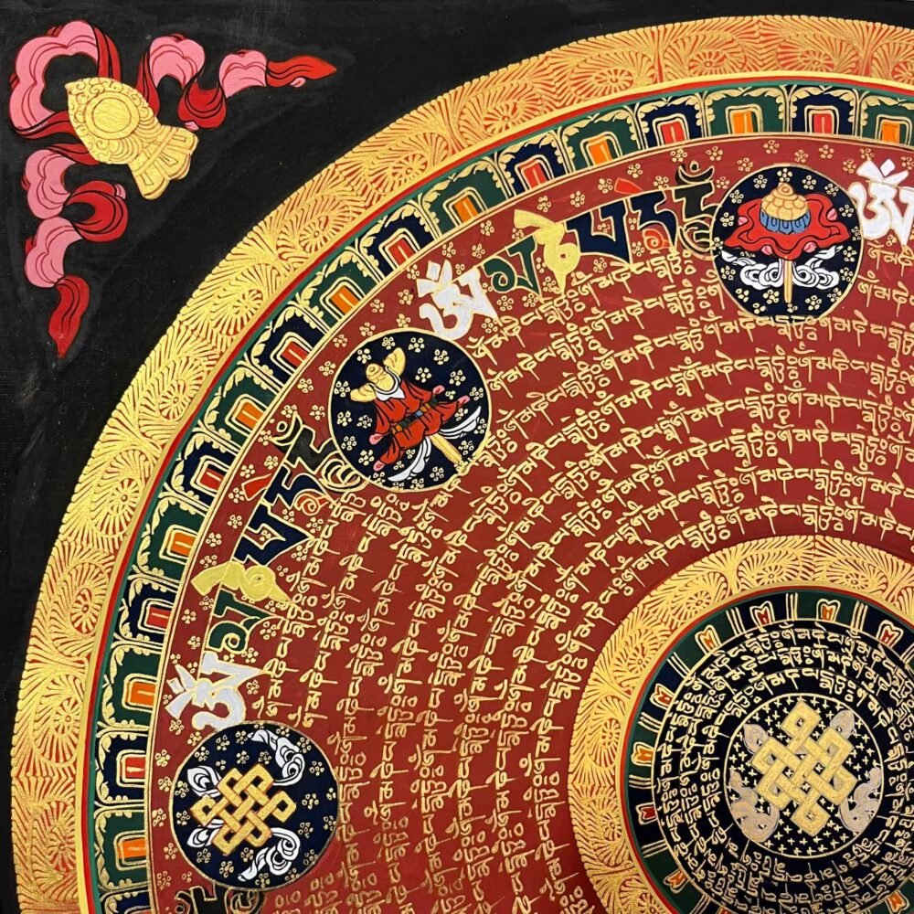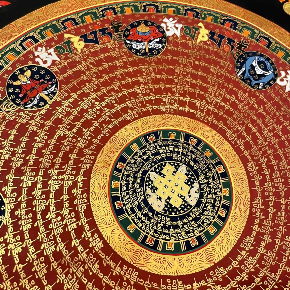 that they in turn promote greater ignorance.Mantra here refers to the recitation of the essence words of the particular rituals of deities. When the word mantra is separated into two segments, it reveals the inner menning of salvaging one’s mind from conceptualization, concept and fear. “Man” in Sanskrit means mind, and “tra” in Sanskrit means to protect. “om mani padme hum” the six syllables, om mani pad me hum, mean that in dependence on the practice of a path which is an indivisible union of method and wisdom, you can transform your impure body, speech, and mind into the pure exalted body, speech, and mind of a Buddha.