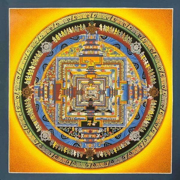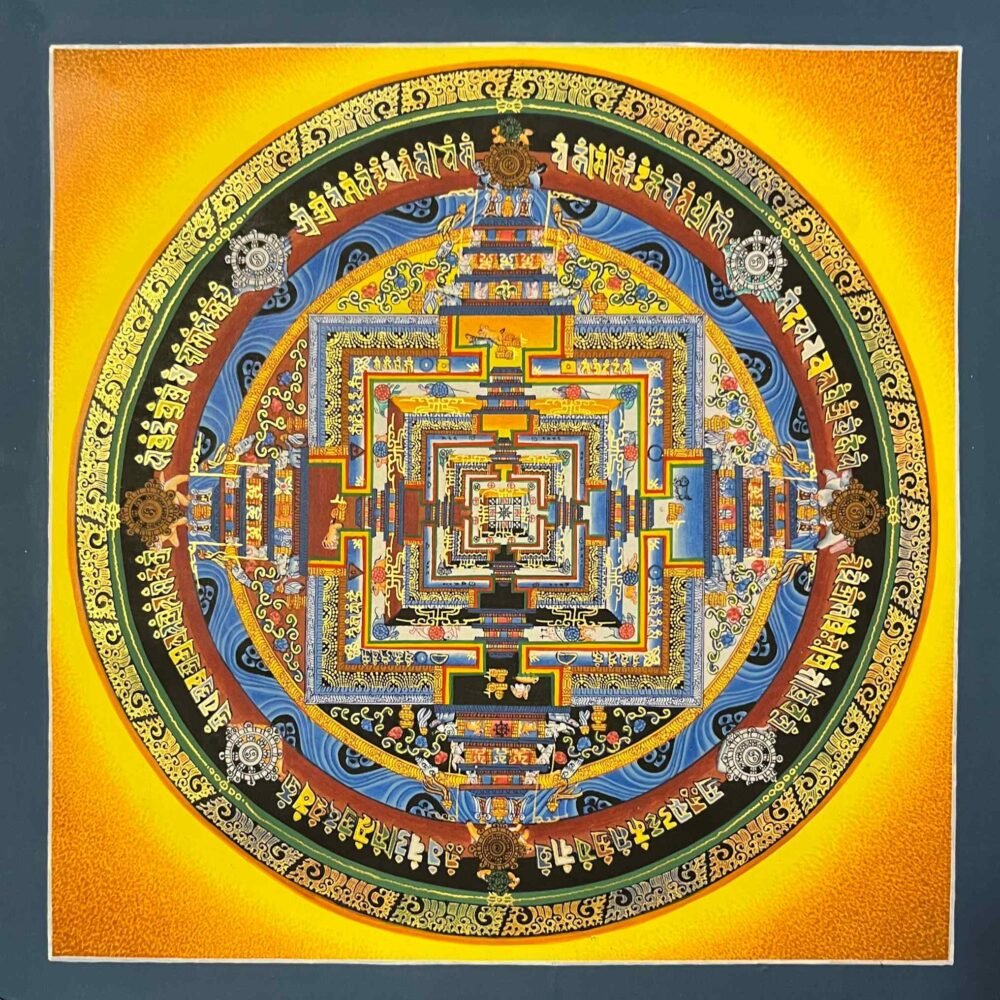 Kalachakra is the combination of two words kala which means time and chakra the endless circle kalachakra is also known as Wheel of time As we see here there are colorful circle there the symbols of six different elements i.e., wisdom, space, wind, fire, water and earth. After crossing these elements. We reach the palace of purity and we can see the three main entrance doors. They are body speech and mind doors continuously. The doors are in four different sides and are colorful. The color shows different directions. At the center we can see a booming lotus flower which is known as nirvana.Kalachakra means “wheel of time” which is design by H.H. Dalai Lama representation of Buddhist Stupa from ariel view. Kalachakra Mandala is a visual depietion of the Kalachakra Tantra Kalachakra Mandala outward they consist of rings of earthm, water, fire, wind, space and wisdom. one of most advanced and complex teachings of Buddhism. Practitioners use the mandala to visualize in meditation the steps along the Path to Enlightement. Everything in this mandala is the symbolic representation of some aspect of the Kalachakra deity and the deity’s univers. There are 722 deities in the mandala which symbolize carious manisfestations of aspects of conseciousness and reality. Understanding and interpreting all of the symbols included in the mandala would be like reading the Kalachakra texts, which contains a vast range of teachings from cosmology to epistemology to psychology, Kalachakra mandala has three diamensional palace containing five stories, each divided into four quadrants by compass direcion. Each quadrant is colored so as to represent elements within the human body: East corresponds with th color black. North corresponds with white. West with yellow and South with red, The five stories consist of the enlightened body, enlightened speech, enlightened mind. enlightened wisdom and enlightened great bliss. Beneath the palace are four element al ring and two outer rings. From the inside.